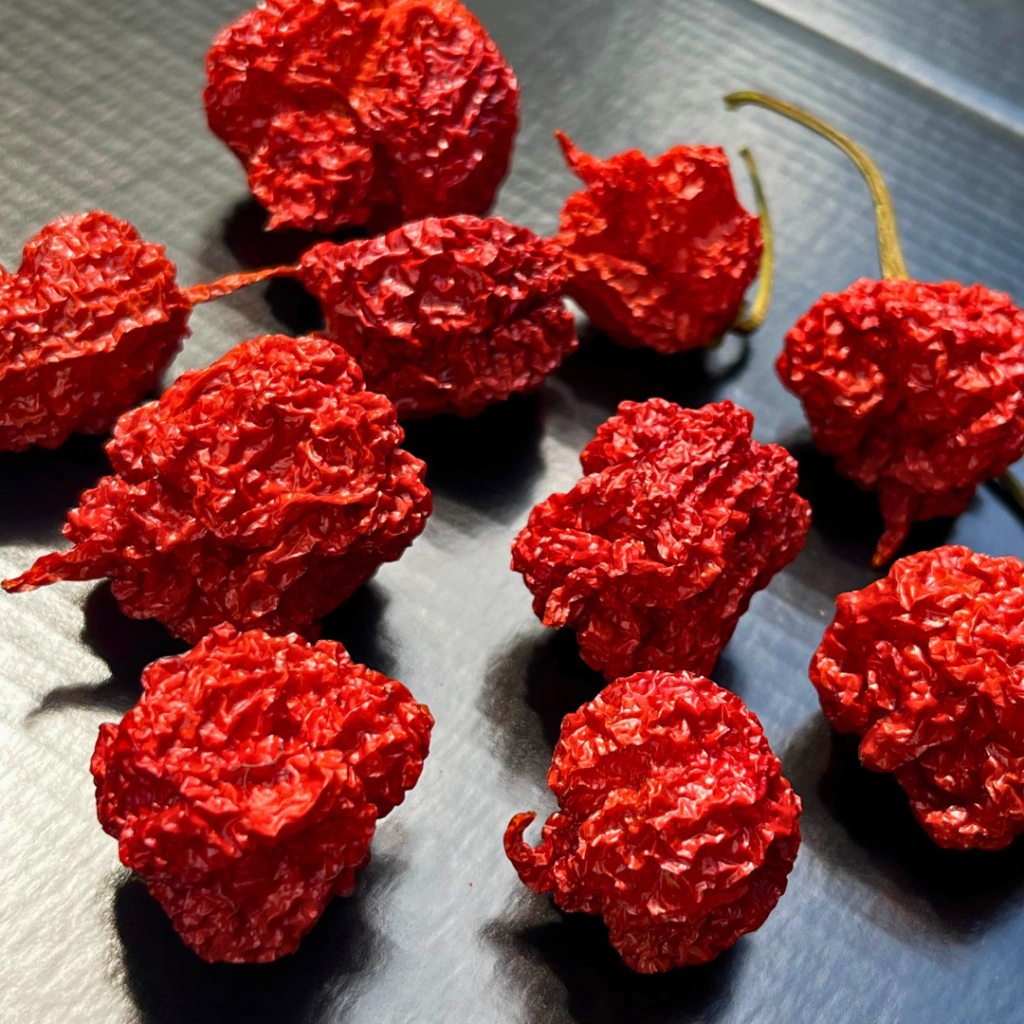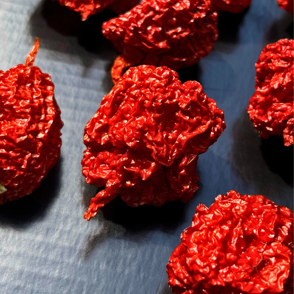 Prepare-se para uma explosão de sabor e picância com os Frutos de Carolina Reaper desidratados! Considerada a pimenta mais forte do mundo, a Carolina Reaper é perfeita para os amantes de uma experiência gastronômica intensa e única.